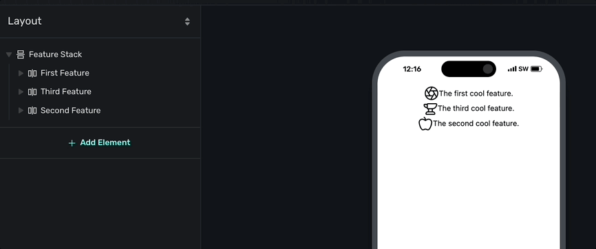 • Stack: The foundation of any layout, it works like CSS Flexbox layout. Check out this reference if you're new to Flexbox rules, alignment or just need a refresher.