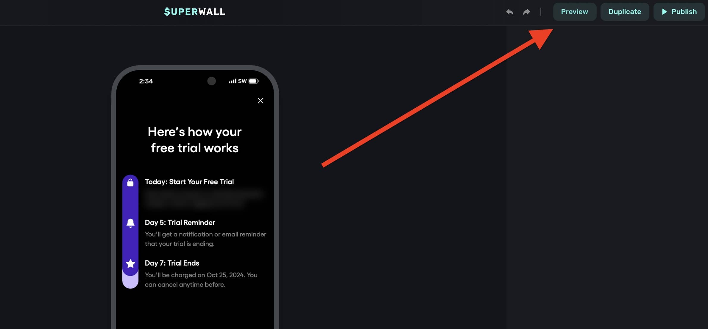 2. Open the paywall editor and click "Preview":