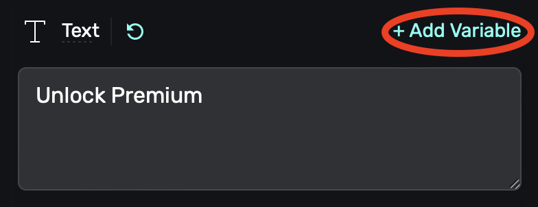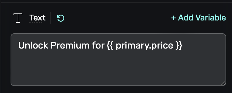 You can show product, user, or device data within text elements by adding a Variable. This uses a language called Liquid to substitute in data at runtime.