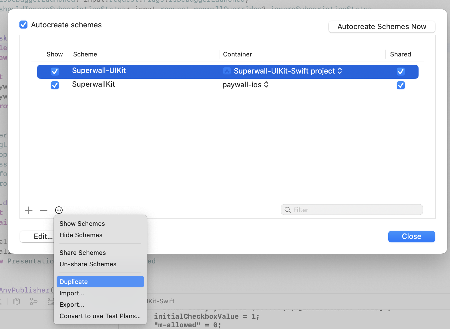 If you haven't already got a Staging scheme, select your current scheme and click Duplicate: