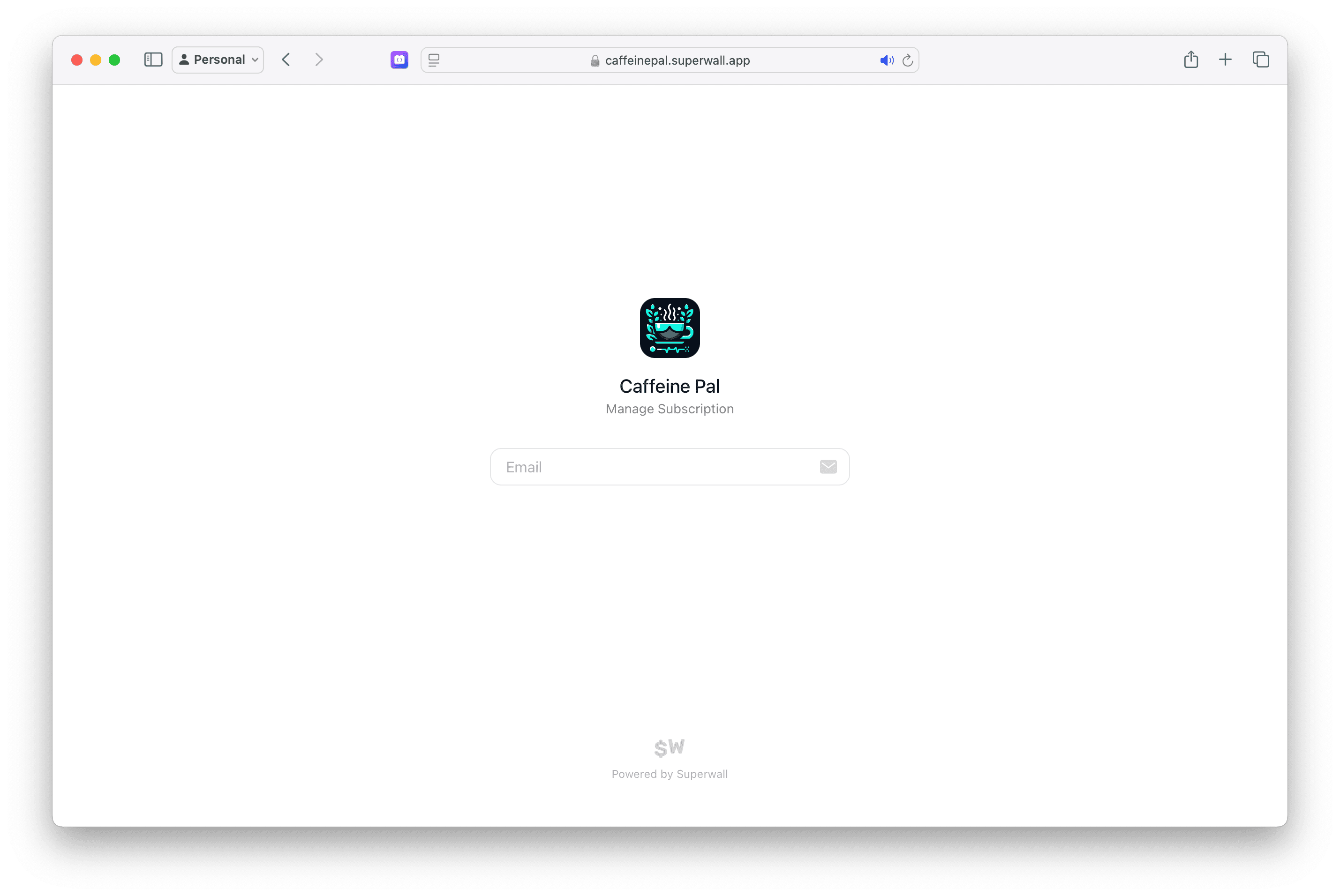 For the above example, the URL would be https://caffeinepal.superwall.app/manage. After entering their email, they will receive a link to manage their subscription, update payment methods, view their billing history, and more: